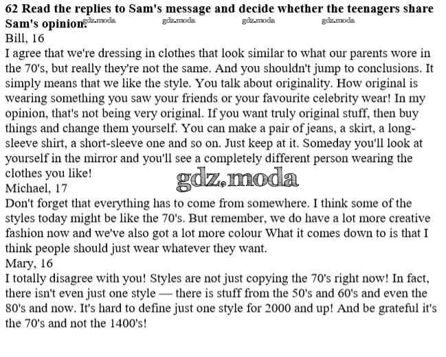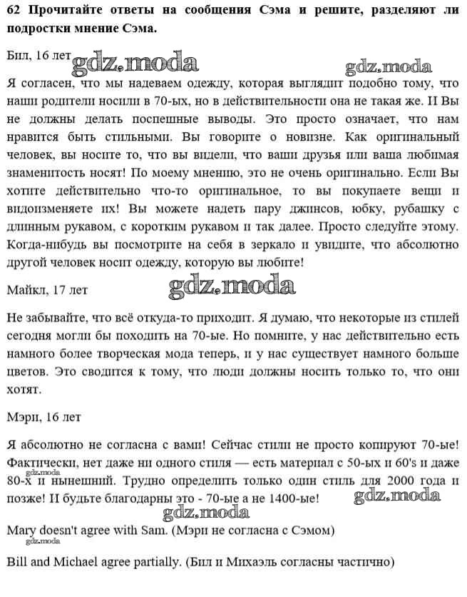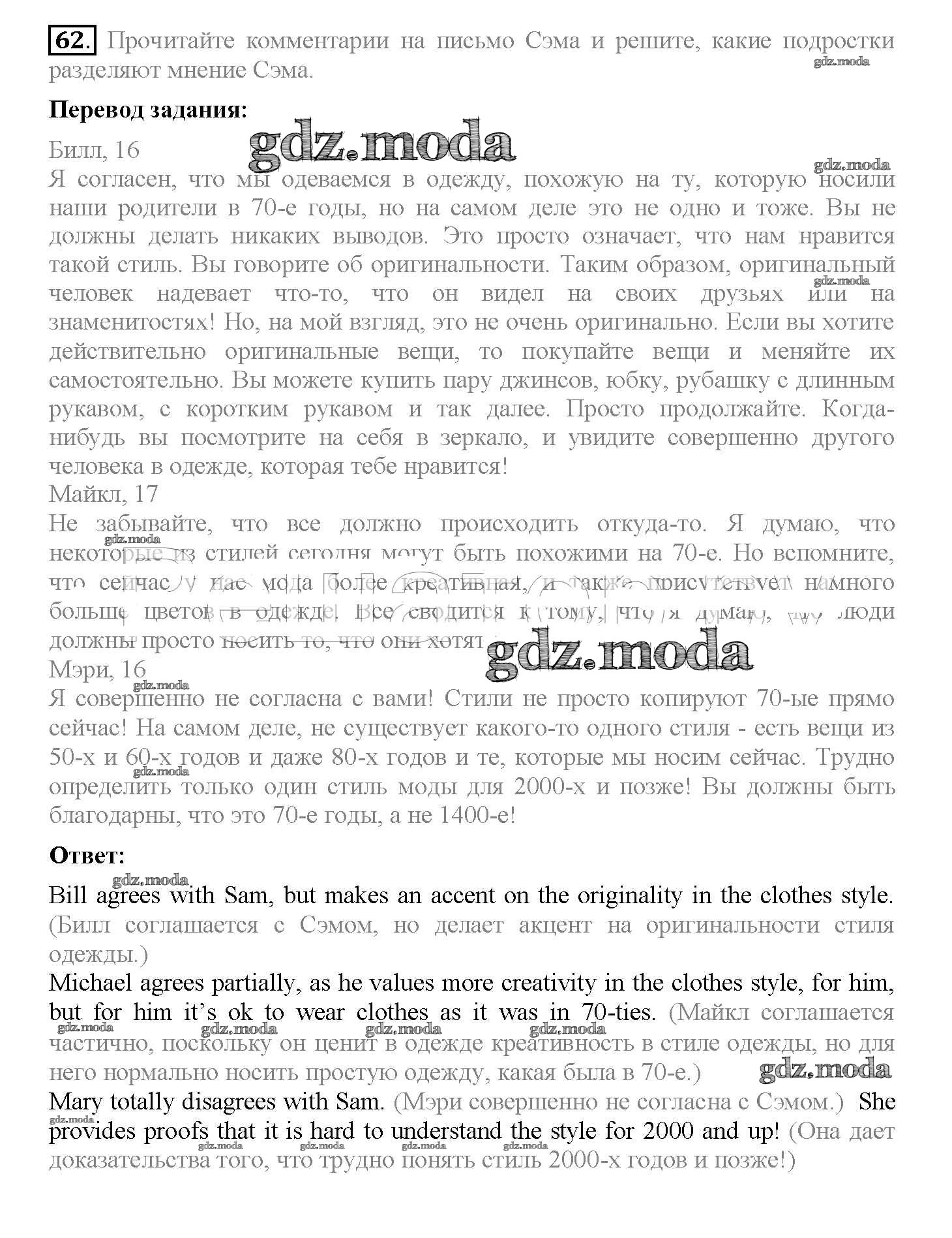 ГДЗ решение к заданию № 62 Английский язык 10 класс Enjoy English Биболетова М.З. Аст/Астрель 2016 ФГОС бесплатно на гдз.мода!