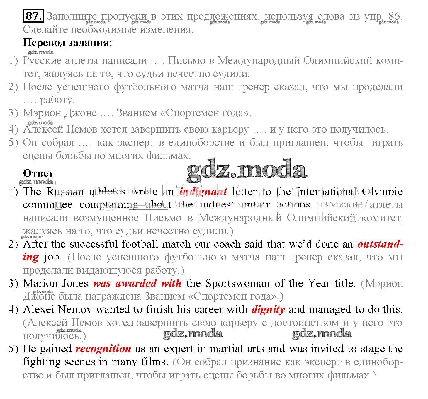 ГДЗ решение к заданию № 87 Английский язык 10 класс Enjoy English Биболетова М.З. Аст/Астрель 2016 ФГОС бесплатно на гдз.мода!