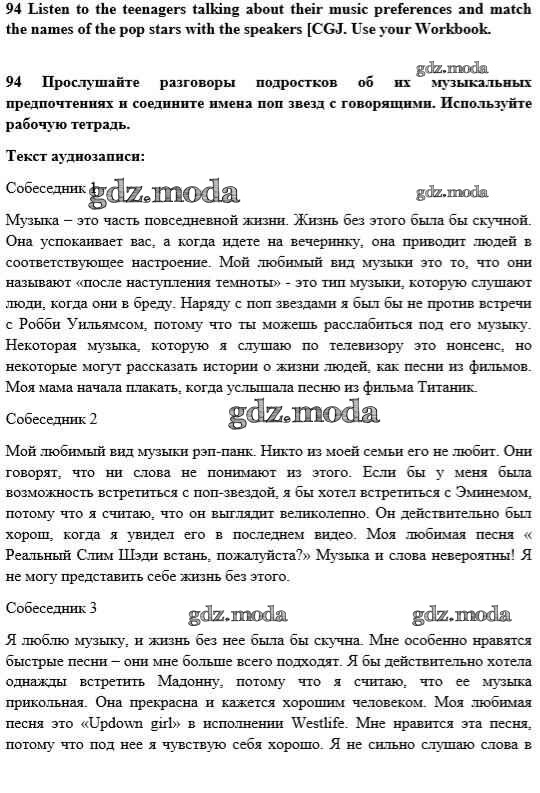 ГДЗ решение к заданию № 94 Английский язык 10 класс Enjoy English Биболетова М.З. Аст/Астрель 2016 ФГОС бесплатно на гдз.мода!