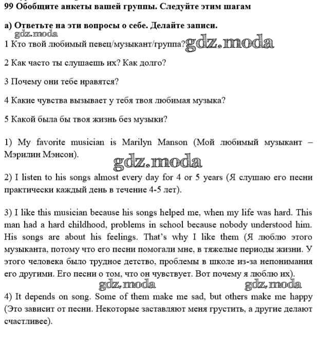 ГДЗ решение к заданию № 99 Английский язык 10 класс Enjoy English Биболетова М.З. Аст/Астрель 2016 ФГОС бесплатно на гдз.мода!