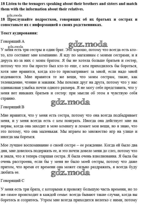 ГДЗ решение к заданию № 18 Английский язык 10 класс Enjoy English Биболетова М.З. Аст/Астрель 2016 ФГОС бесплатно на гдз.мода!