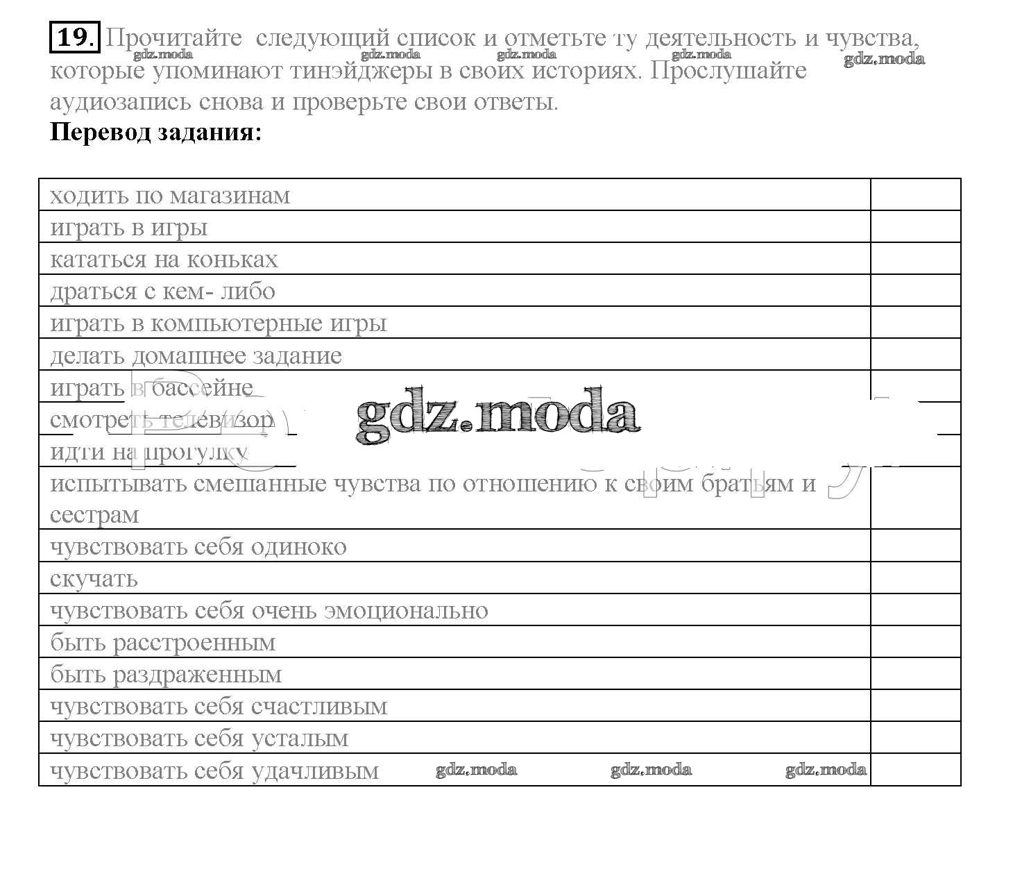 ГДЗ решение к заданию № 19 Английский язык 10 класс Enjoy English Биболетова М.З. Аст/Астрель 2016 ФГОС бесплатно на гдз.мода!