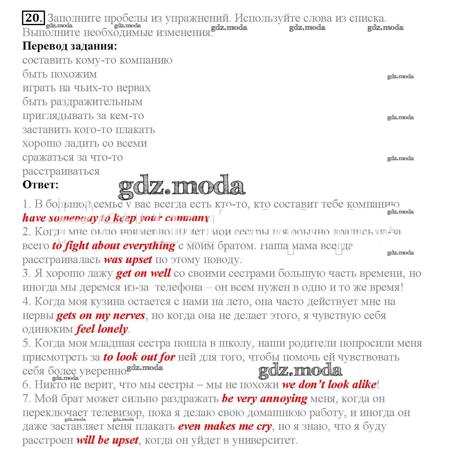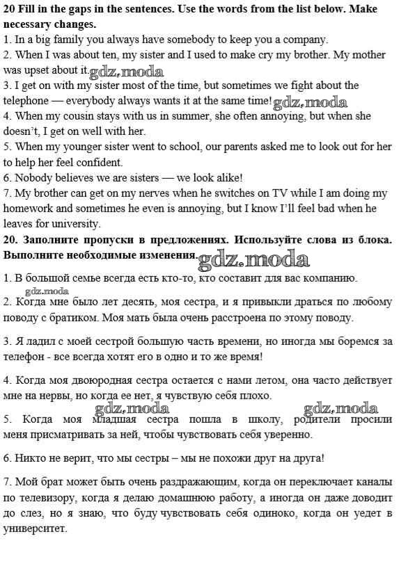 ГДЗ решение к заданию № 20 Английский язык 10 класс Enjoy English Биболетова М.З. Аст/Астрель 2016 ФГОС бесплатно на гдз.мода!