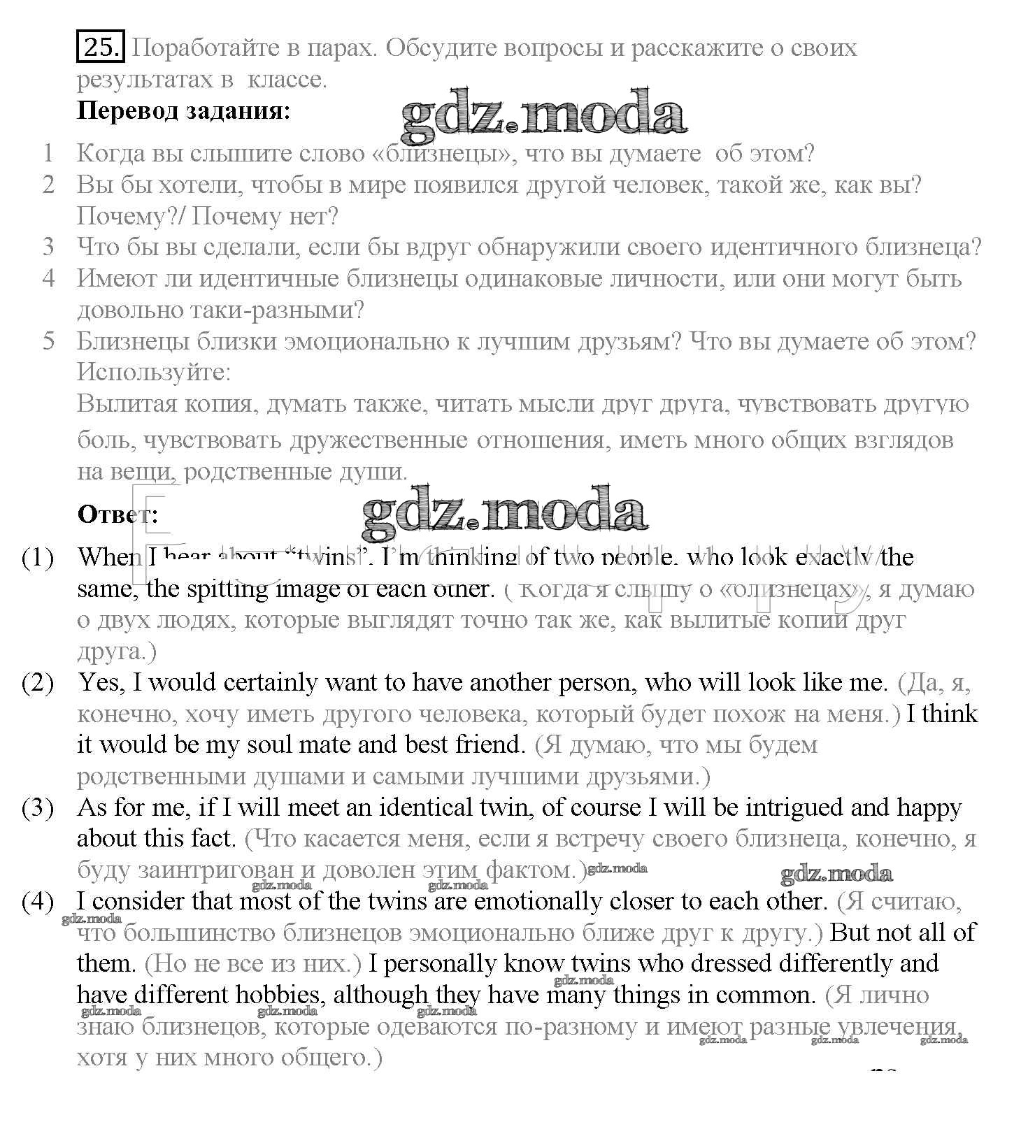 ГДЗ решение к заданию № 25 Английский язык 10 класс Enjoy English Биболетова М.З. Аст/Астрель 2016 ФГОС бесплатно на гдз.мода!