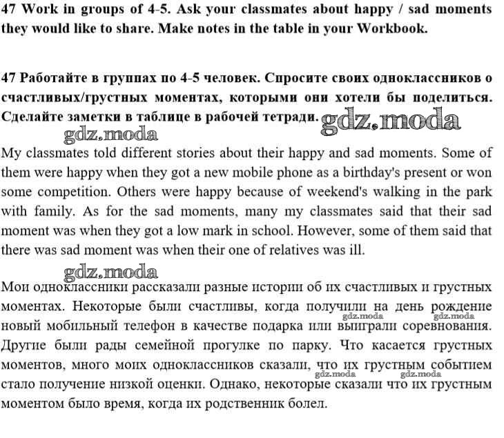 ГДЗ решение к заданию № 47 Английский язык 10 класс Enjoy English Биболетова М.З. Аст/Астрель 2016 ФГОС бесплатно на гдз.мода!