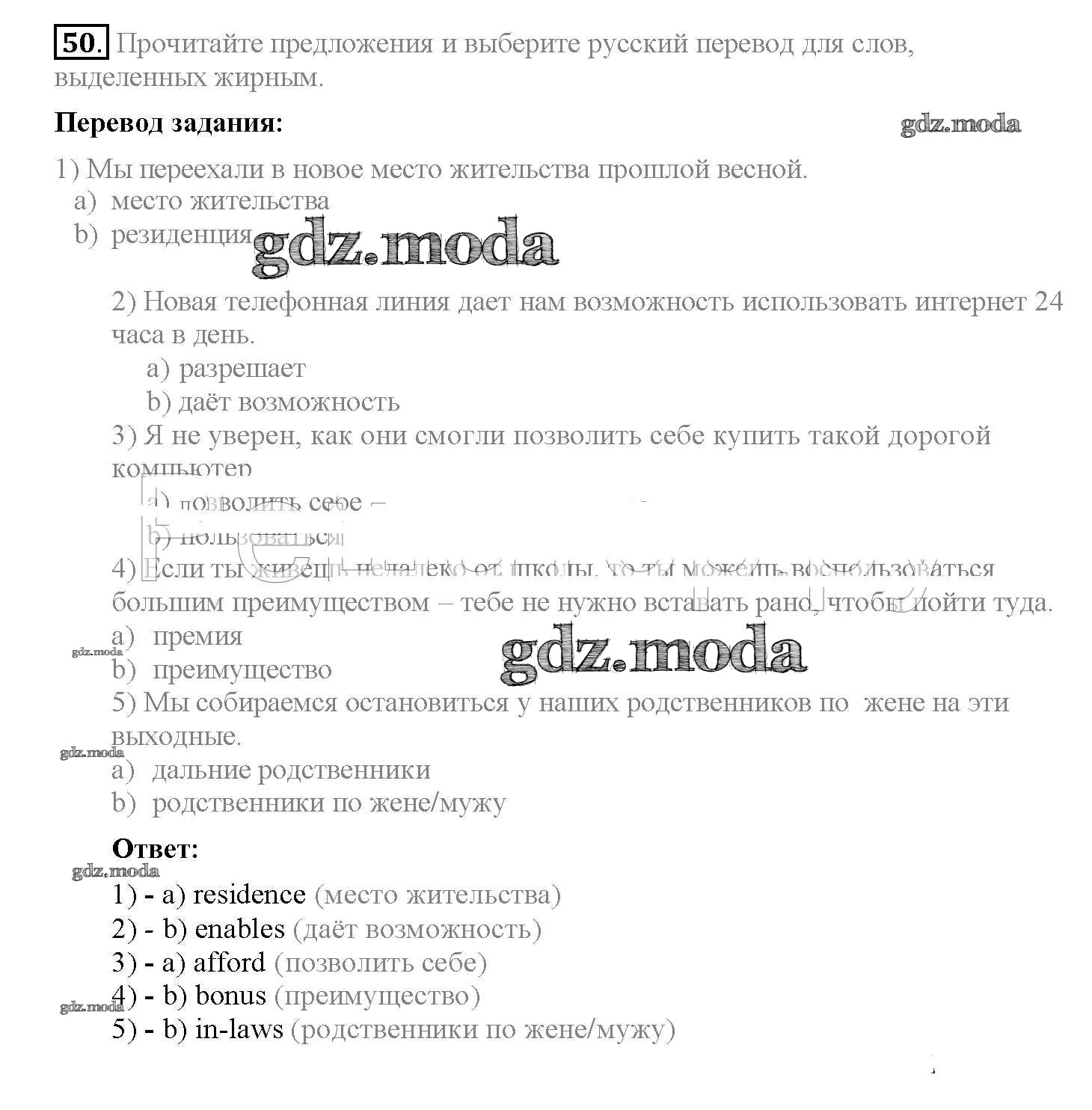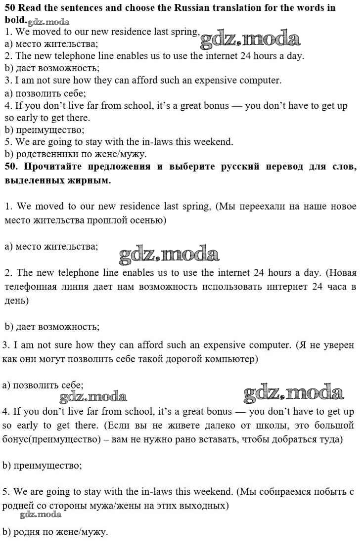 ГДЗ решение к заданию № 50 Английский язык 10 класс Enjoy English Биболетова М.З. Аст/Астрель 2016 ФГОС бесплатно на гдз.мода!