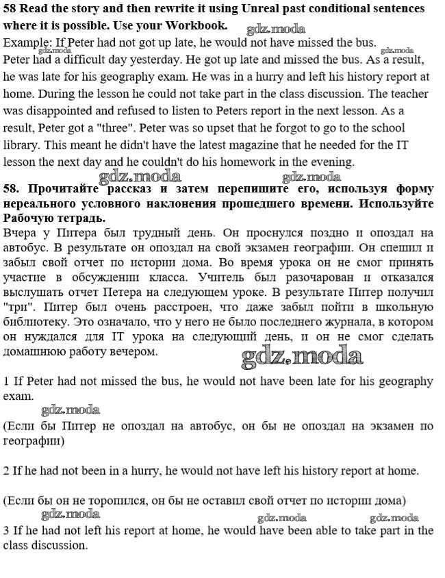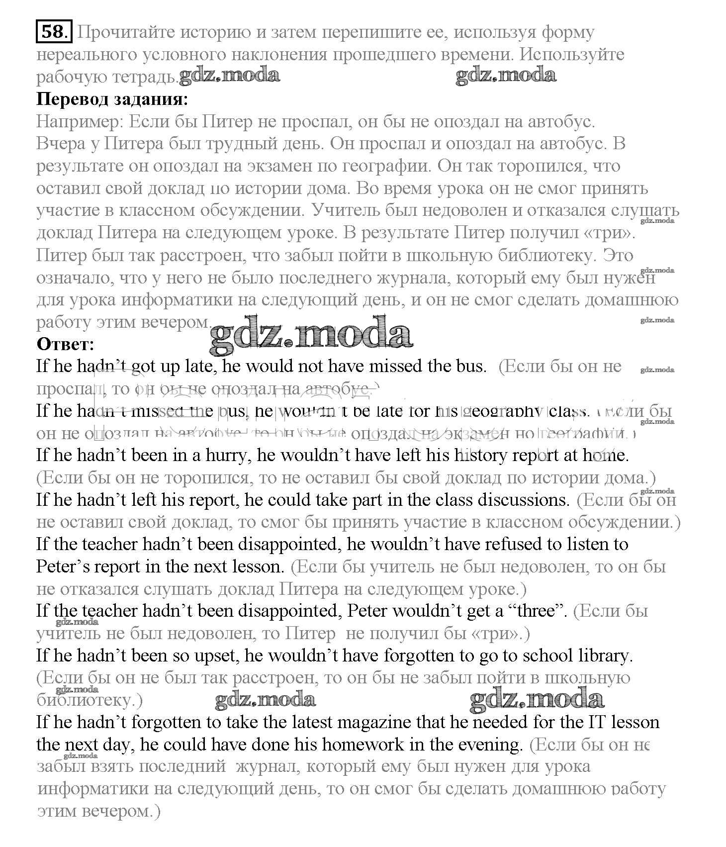 ГДЗ решение к заданию № 58 Английский язык 10 класс Enjoy English Биболетова М.З. Аст/Астрель 2016 ФГОС бесплатно на гдз.мода!