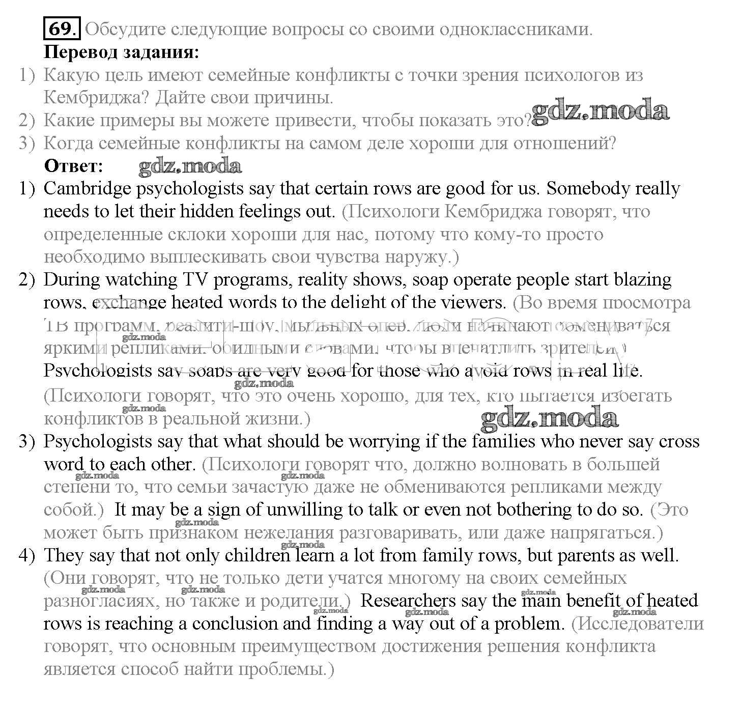 ГДЗ решение к заданию № 69 Английский язык 10 класс Enjoy English Биболетова М.З. Аст/Астрель 2016 ФГОС бесплатно на гдз.мода!