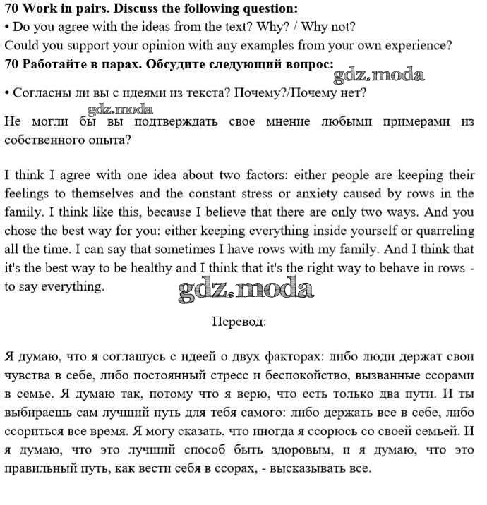 ГДЗ решение к заданию № 70 Английский язык 10 класс Enjoy English Биболетова М.З. Аст/Астрель 2016 ФГОС бесплатно на гдз.мода!