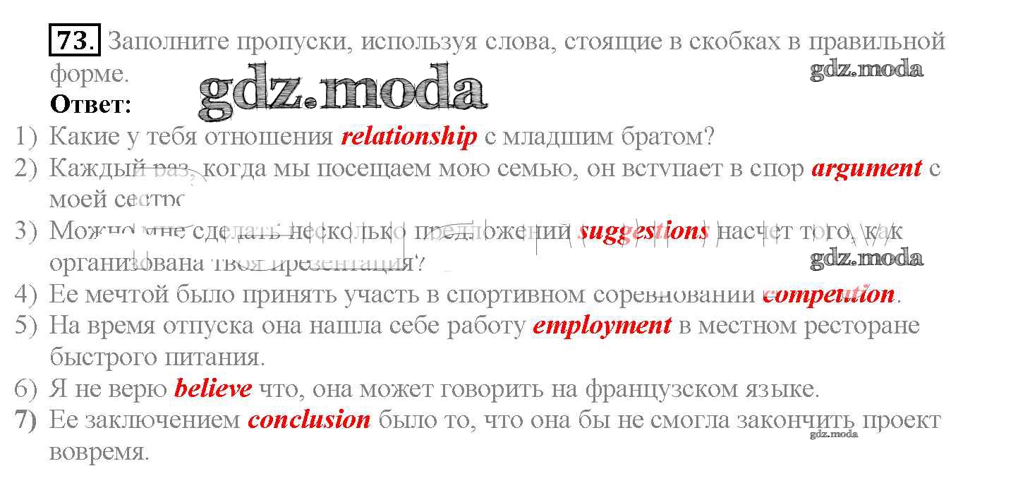 ГДЗ решение к заданию № 73 Английский язык 10 класс Enjoy English Биболетова М.З. Аст/Астрель 2016 ФГОС бесплатно на гдз.мода!