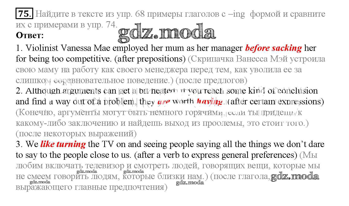 ГДЗ решение к заданию № 75 Английский язык 10 класс Enjoy English Биболетова М.З. Аст/Астрель 2016 ФГОС бесплатно на гдз.мода!