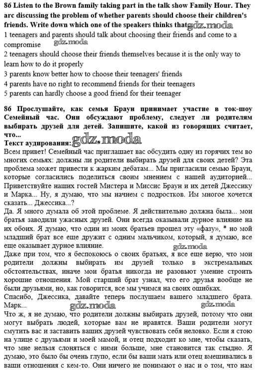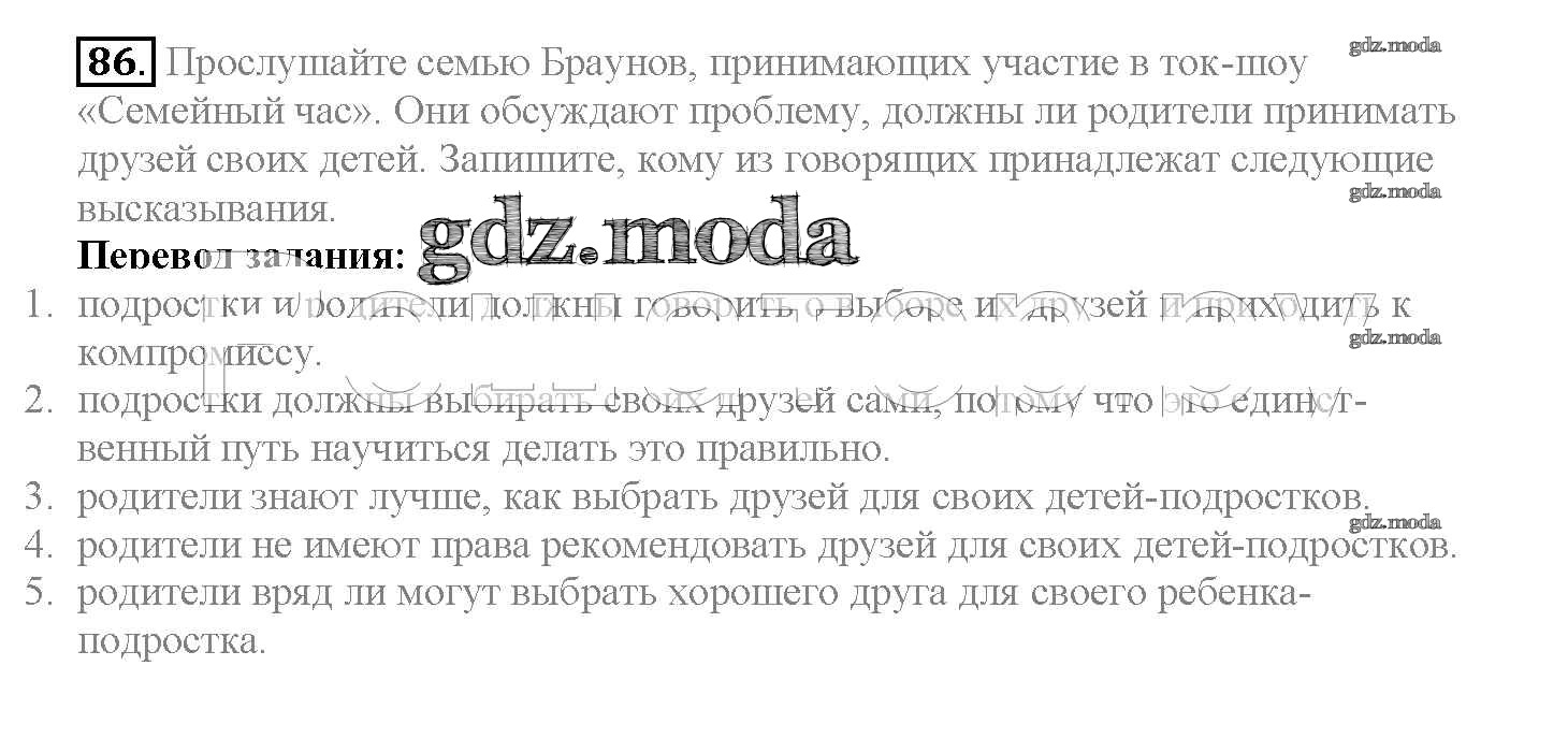 ГДЗ решение к заданию № 86 Английский язык 10 класс Enjoy English Биболетова М.З. Аст/Астрель 2016 ФГОС бесплатно на гдз.мода!