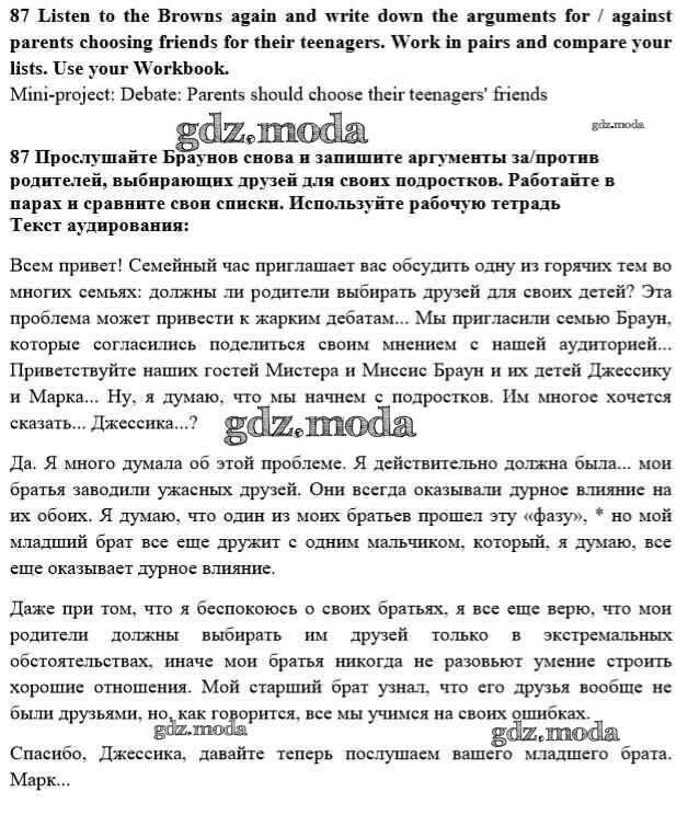 ГДЗ решение к заданию № 87 Английский язык 10 класс Enjoy English Биболетова М.З. Аст/Астрель 2016 ФГОС бесплатно на гдз.мода!