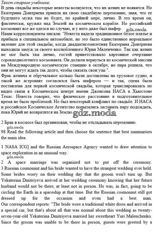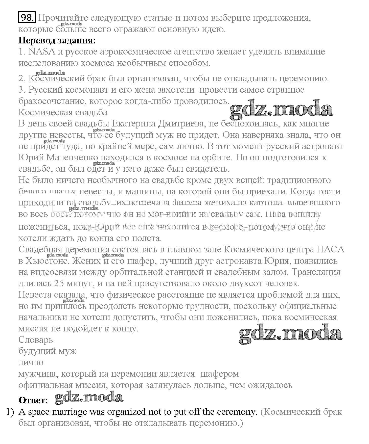 ГДЗ решение к заданию № 98 Английский язык 10 класс Enjoy English Биболетова М.З. Аст/Астрель 2016 ФГОС бесплатно на гдз.мода!