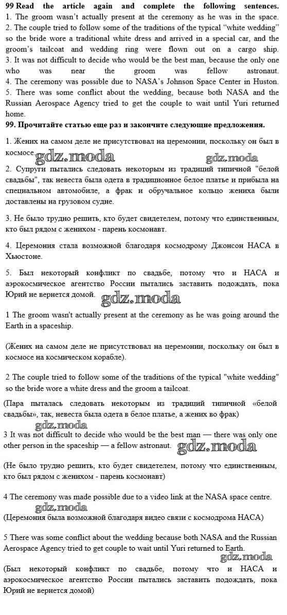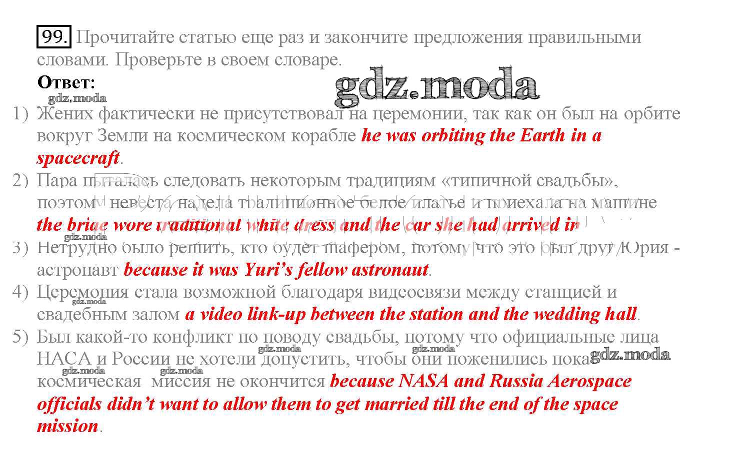 ГДЗ решение к заданию № 99 Английский язык 10 класс Enjoy English Биболетова М.З. Аст/Астрель 2016 ФГОС бесплатно на гдз.мода!