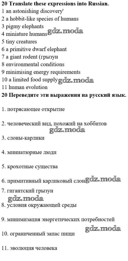 ГДЗ решение к заданию № 20 Английский язык 10 класс Enjoy English Биболетова М.З. Аст/Астрель 2016 ФГОС бесплатно на гдз.мода!