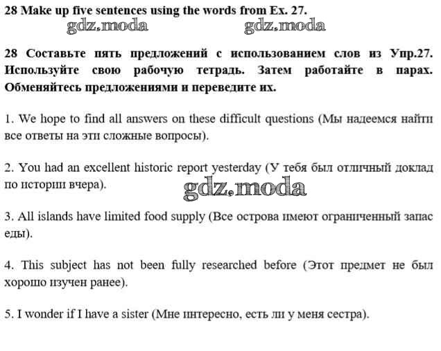 ГДЗ решение к заданию № 28 Английский язык 10 класс Enjoy English Биболетова М.З. Аст/Астрель 2016 ФГОС бесплатно на гдз.мода!