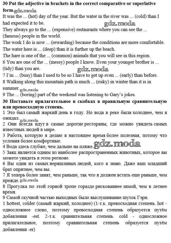 ГДЗ решение к заданию № 30 Английский язык 10 класс Enjoy English Биболетова М.З. Аст/Астрель 2016 ФГОС бесплатно на гдз.мода!