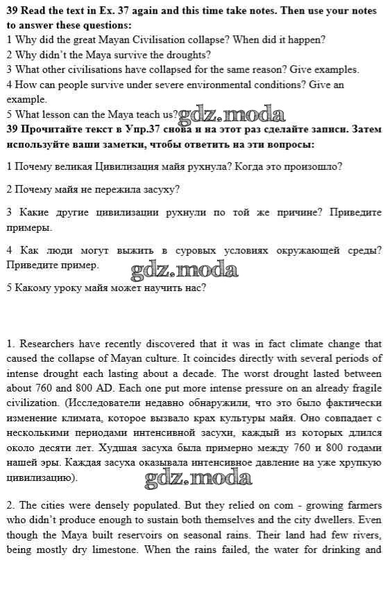ГДЗ решение к заданию № 39 Английский язык 10 класс Enjoy English Биболетова М.З. Аст/Астрель 2016 ФГОС бесплатно на гдз.мода!