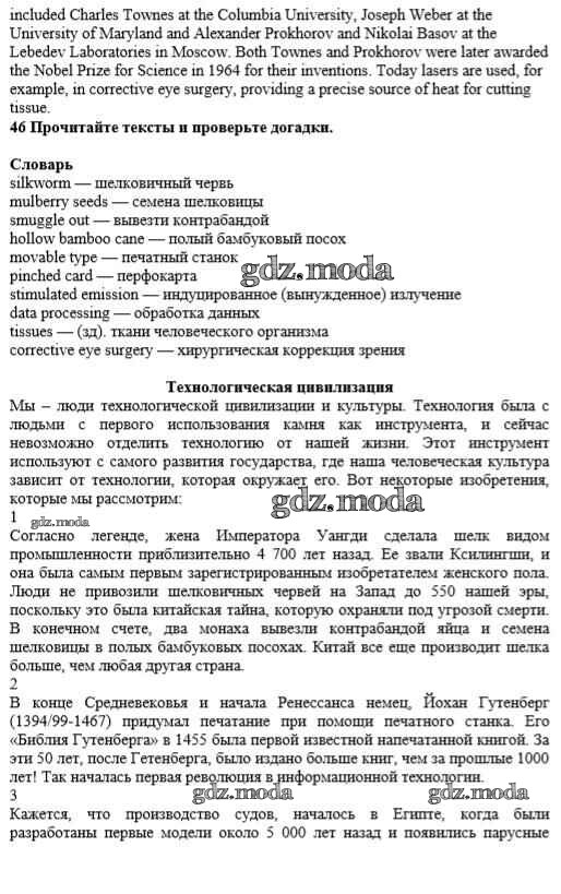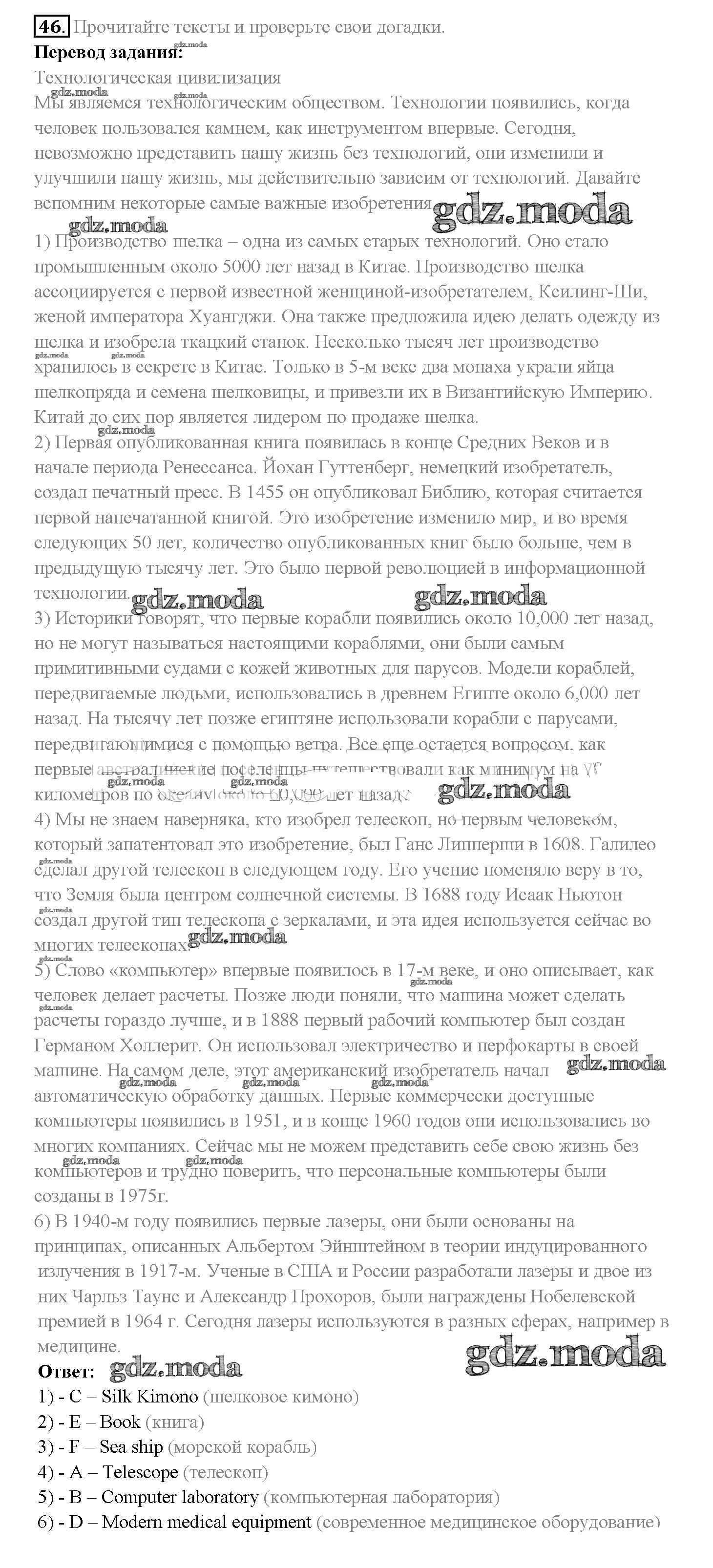 ГДЗ решение к заданию № 46 Английский язык 10 класс Enjoy English Биболетова М.З. Аст/Астрель 2016 ФГОС бесплатно на гдз.мода!