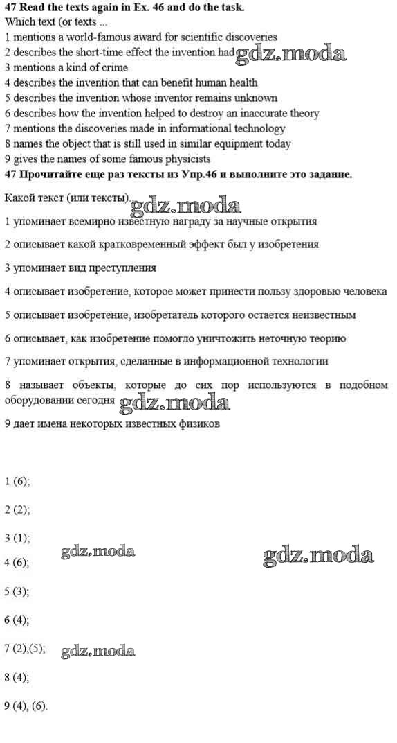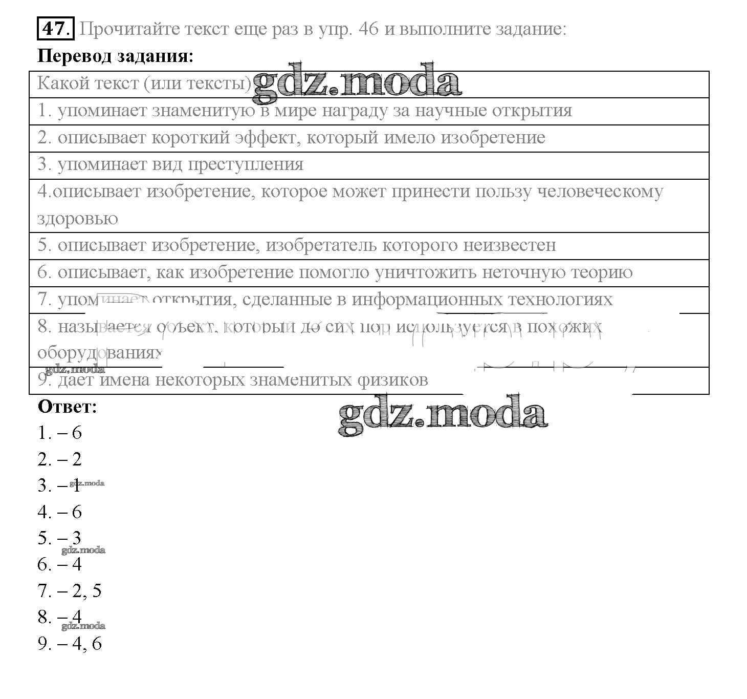 ГДЗ решение к заданию № 47 Английский язык 10 класс Enjoy English Биболетова М.З. Аст/Астрель 2016 ФГОС бесплатно на гдз.мода!