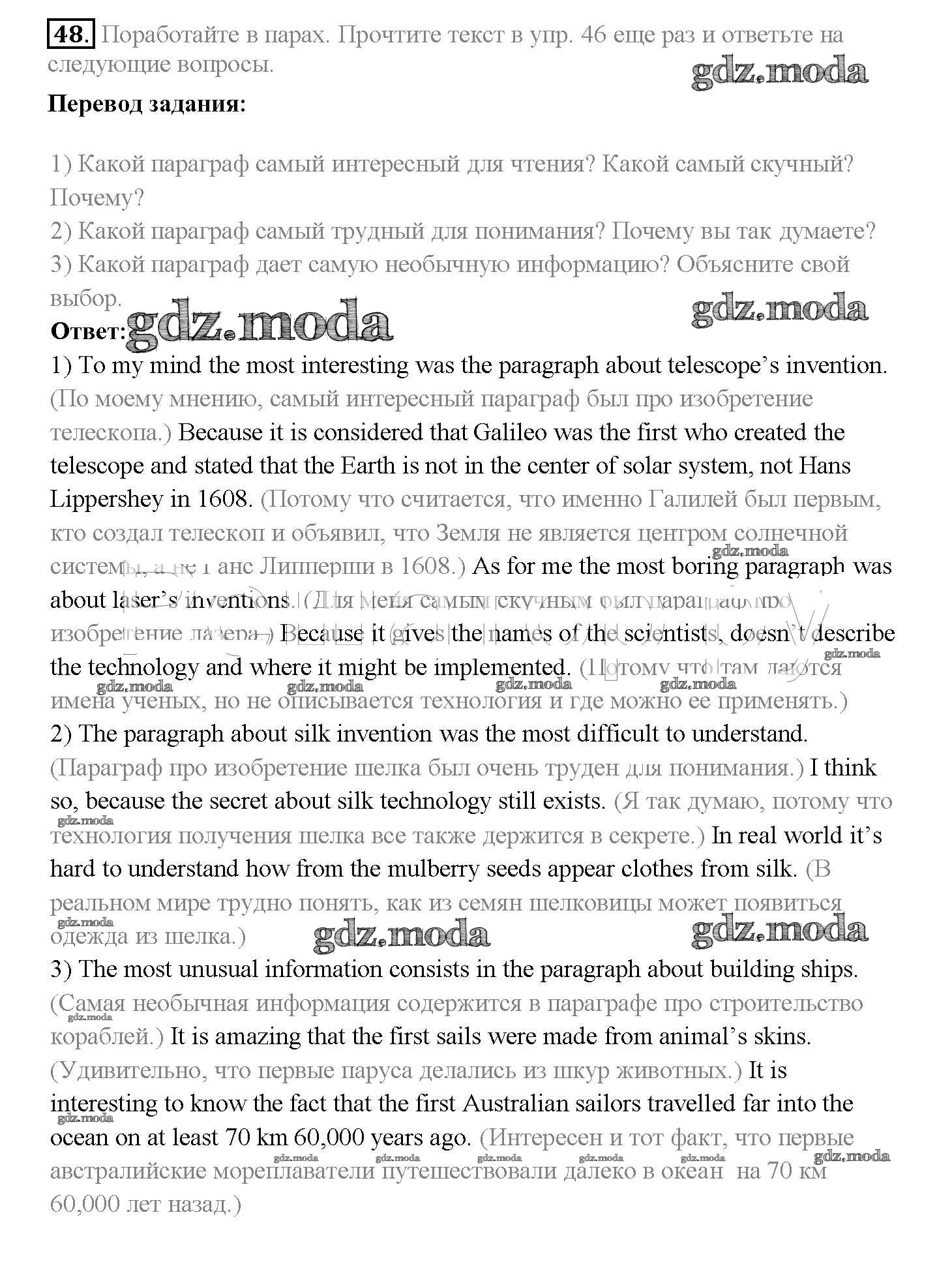 ГДЗ решение к заданию № 48 Английский язык 10 класс Enjoy English Биболетова М.З. Аст/Астрель 2016 ФГОС бесплатно на гдз.мода!