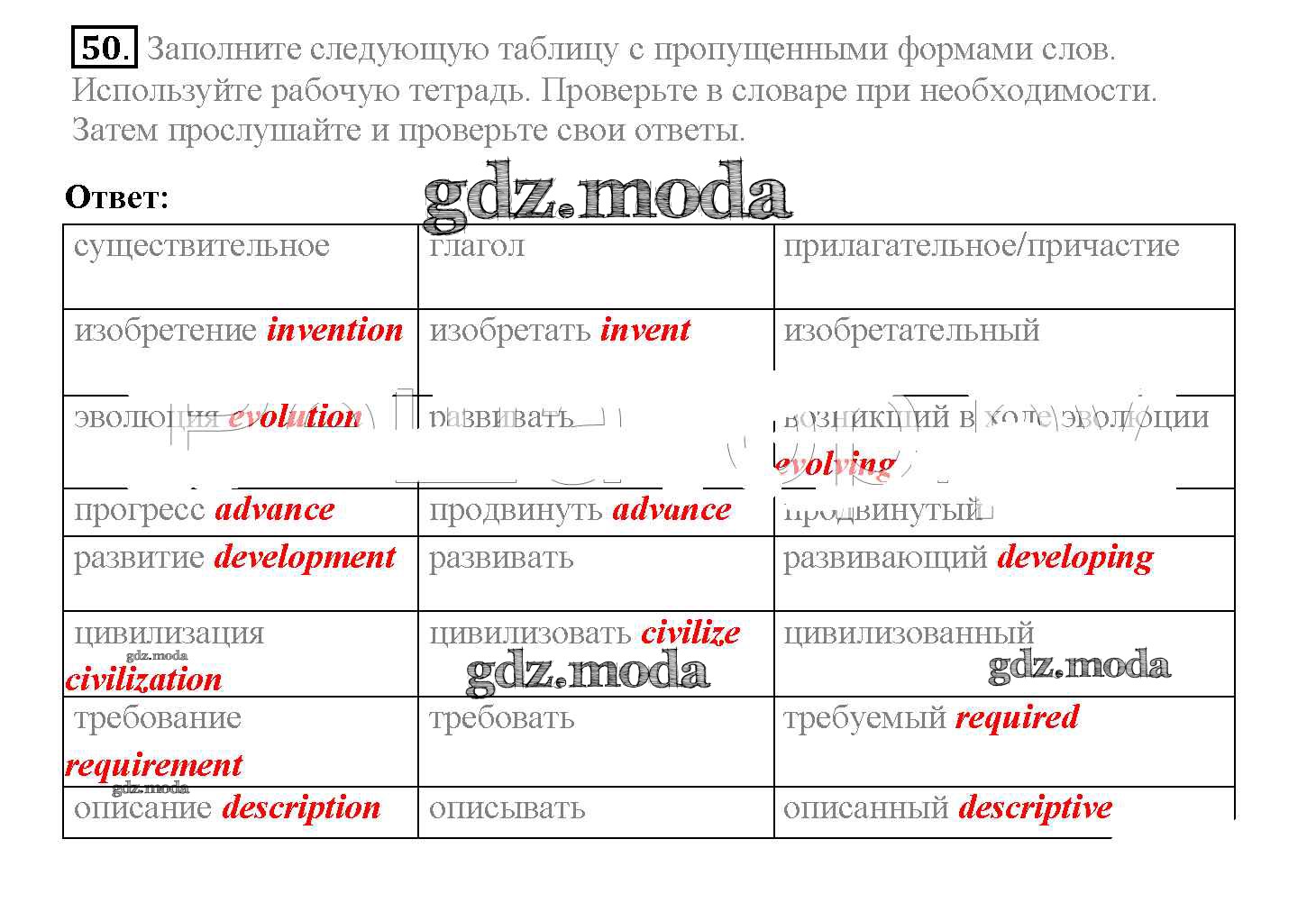 ГДЗ решение к заданию № 50 Английский язык 10 класс Enjoy English Биболетова М.З. Аст/Астрель 2016 ФГОС бесплатно на гдз.мода!