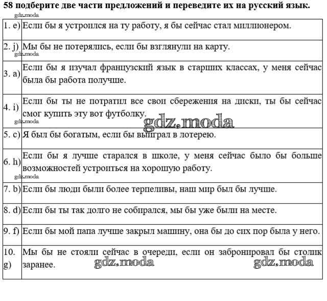 ГДЗ решение к заданию № 58 Английский язык 10 класс Enjoy English Биболетова М.З. Аст/Астрель 2016 ФГОС бесплатно на гдз.мода!