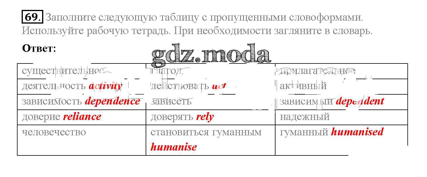 ГДЗ решение к заданию № 69 Английский язык 10 класс Enjoy English Биболетова М.З. Аст/Астрель 2016 ФГОС бесплатно на гдз.мода!