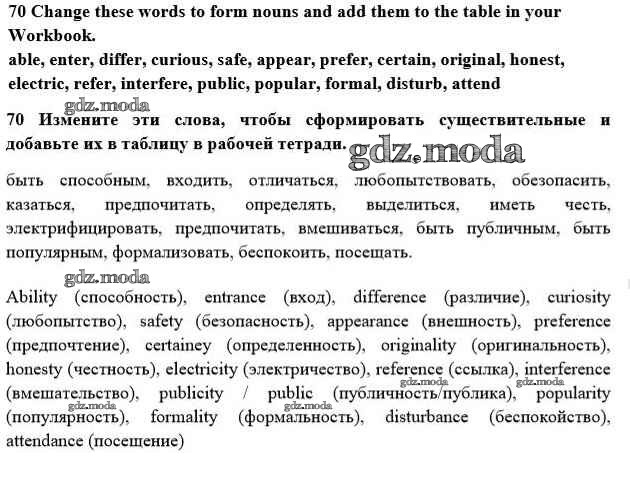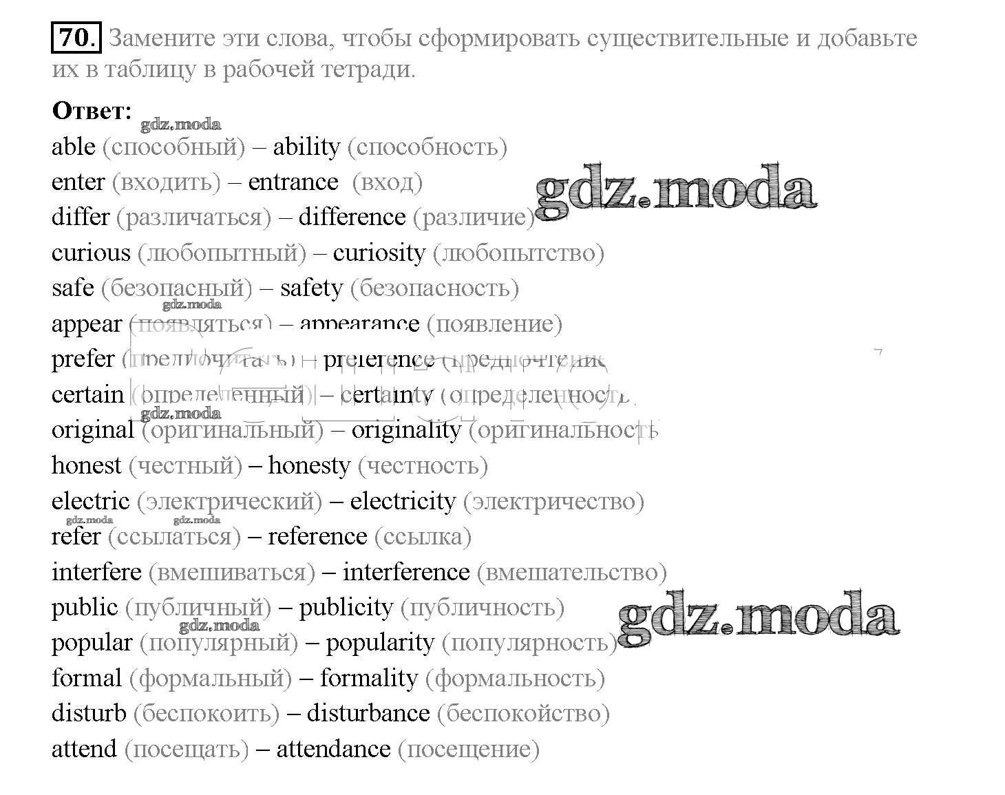 ГДЗ решение к заданию № 70 Английский язык 10 класс Enjoy English Биболетова М.З. Аст/Астрель 2016 ФГОС бесплатно на гдз.мода!