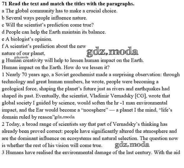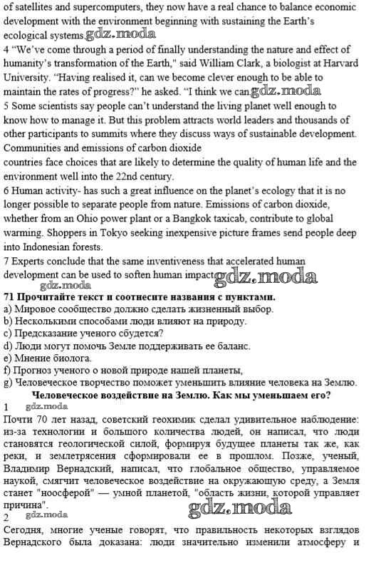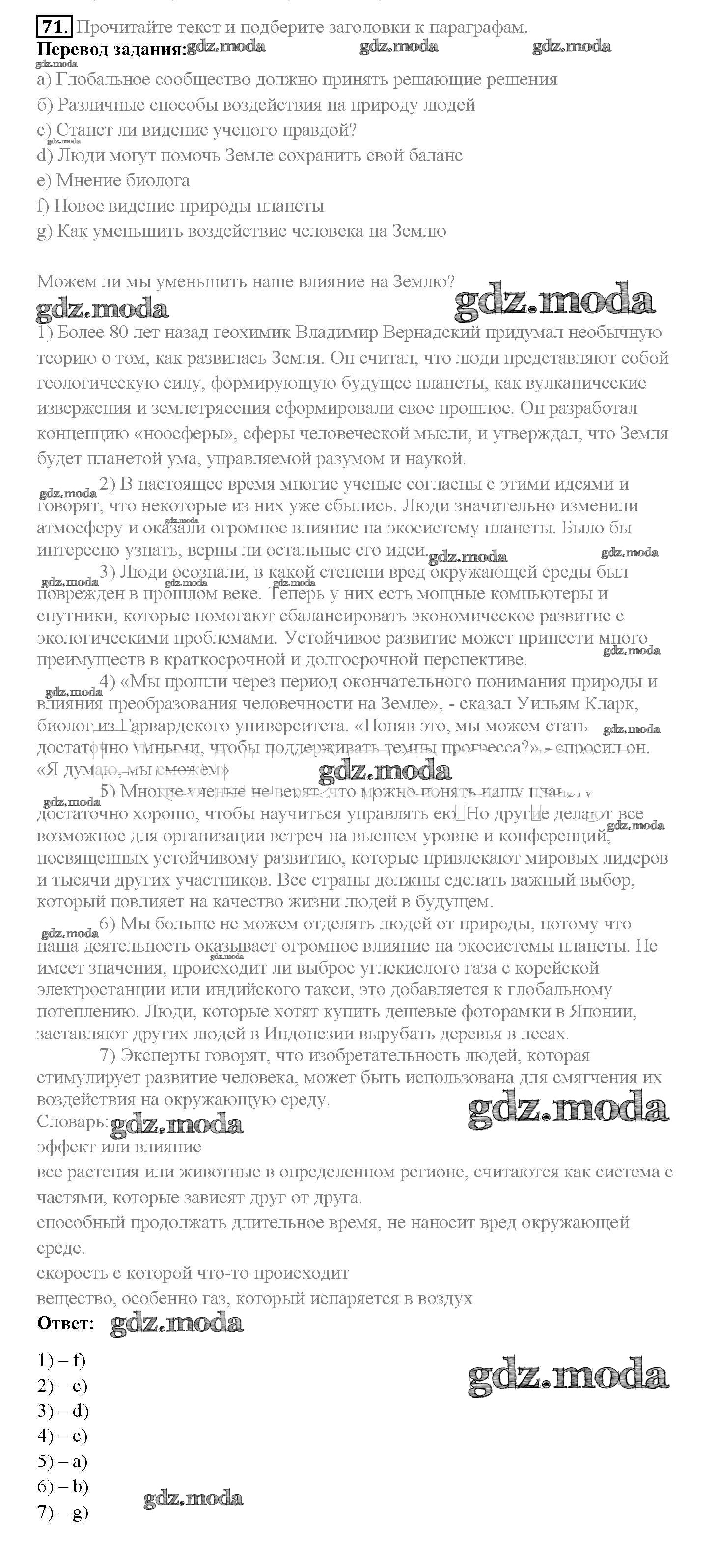 ГДЗ решение к заданию № 71 Английский язык 10 класс Enjoy English Биболетова М.З. Аст/Астрель 2016 ФГОС бесплатно на гдз.мода!