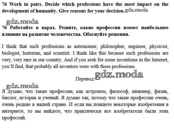 ГДЗ решение к заданию № 76 Английский язык 10 класс Enjoy English Биболетова М.З. Аст/Астрель 2016 ФГОС бесплатно на гдз.мода!