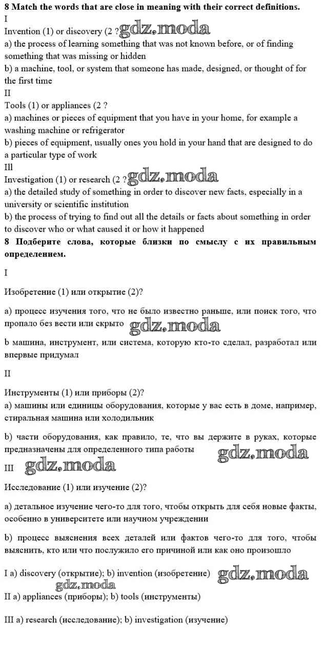 ГДЗ решение к заданию № 8 Английский язык 10 класс Enjoy English Биболетова М.З. Аст/Астрель 2016 ФГОС бесплатно на гдз.мода!