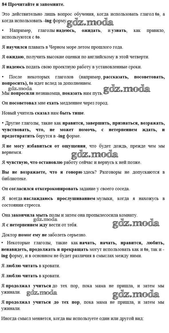 ГДЗ решение к заданию № 84 Английский язык 10 класс Enjoy English Биболетова М.З. Аст/Астрель 2016 ФГОС бесплатно на гдз.мода!