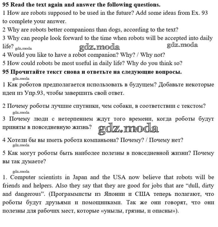 ГДЗ решение к заданию № 95 Английский язык 10 класс Enjoy English Биболетова М.З. Аст/Астрель 2016 ФГОС бесплатно на гдз.мода!
