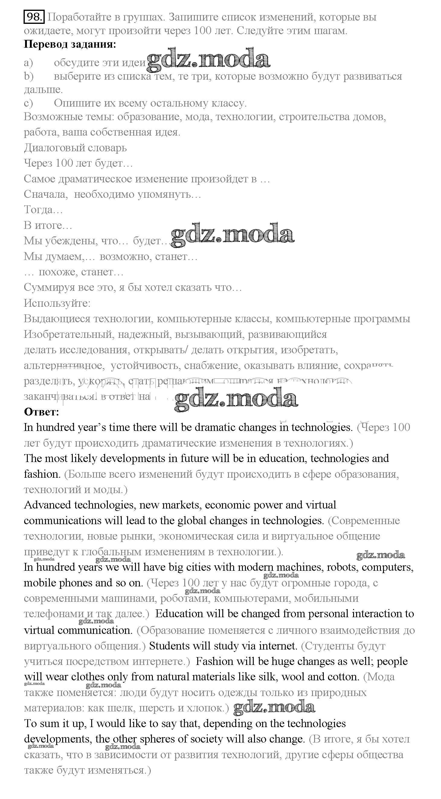 ГДЗ решение к заданию № 98 Английский язык 10 класс Enjoy English Биболетова М.З. Аст/Астрель 2016 ФГОС бесплатно на гдз.мода!