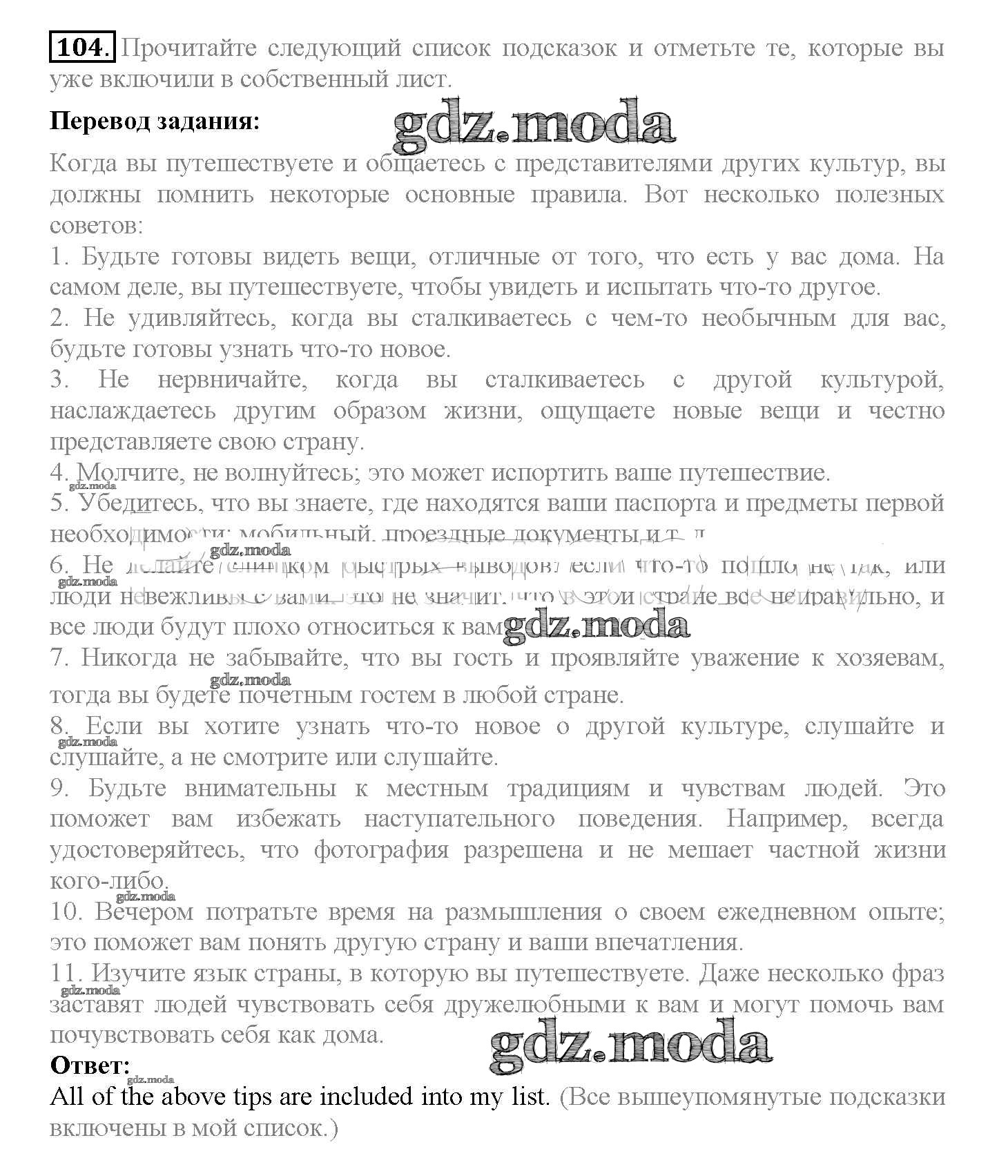 ГДЗ решение к заданию № 104 Английский язык 10 класс Enjoy English Биболетова М.З. Аст/Астрель 2016 ФГОС бесплатно на гдз.мода!