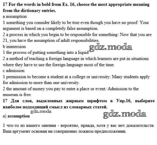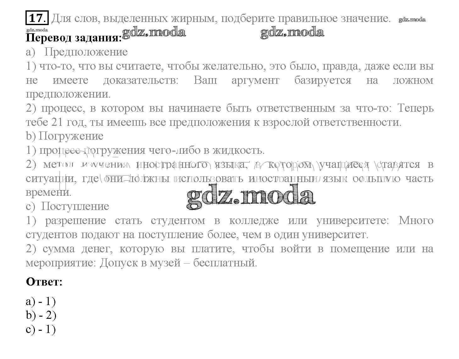 ГДЗ решение к заданию № 17 Английский язык 10 класс Enjoy English Биболетова М.З. Аст/Астрель 2016 ФГОС бесплатно на гдз.мода!