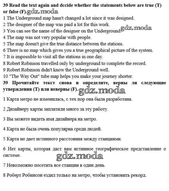 ГДЗ решение к заданию № 39 Английский язык 10 класс Enjoy English Биболетова М.З. Аст/Астрель 2016 ФГОС бесплатно на гдз.мода!