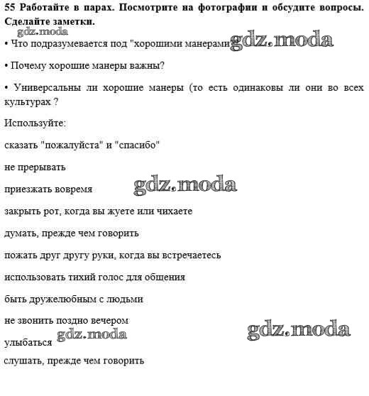 ГДЗ решение к заданию № 55 Английский язык 10 класс Enjoy English Биболетова М.З. Аст/Астрель 2016 ФГОС бесплатно на гдз.мода!