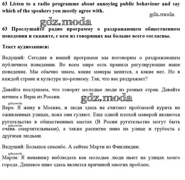 ГДЗ решение к заданию № 63 Английский язык 10 класс Enjoy English Биболетова М.З. Аст/Астрель 2016 ФГОС бесплатно на гдз.мода!