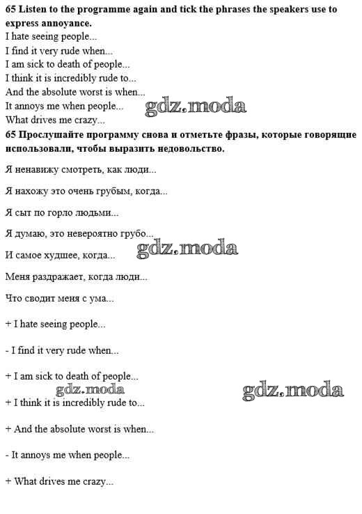 ГДЗ решение к заданию № 65 Английский язык 10 класс Enjoy English Биболетова М.З. Аст/Астрель 2016 ФГОС бесплатно на гдз.мода!