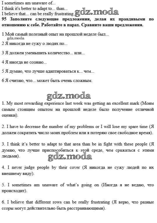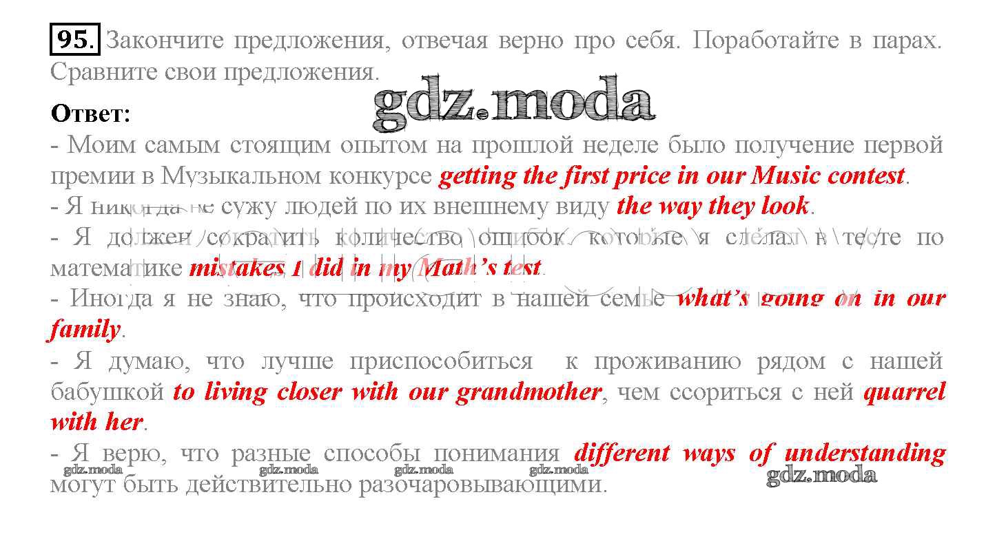 ГДЗ решение к заданию № 95 Английский язык 10 класс Enjoy English Биболетова М.З. Аст/Астрель 2016 ФГОС бесплатно на гдз.мода!