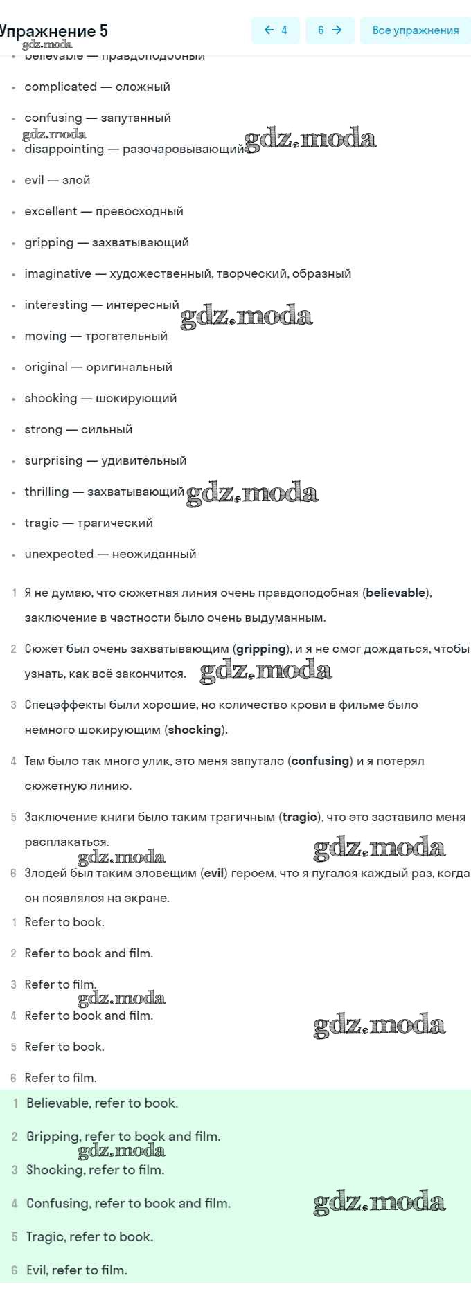ГДЗ решение к заданию № 5 Английский язык 10 класс рабочая тетрадь Starlight Баранова К.М. Просвещение 2021 Углубленный уровень ФГОС бесплатно на гдз.мода!
