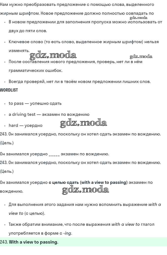 ГДЗ решение к заданию № 243 Английский язык 10 класс рабочая тетрадь Starlight Баранова К.М. Просвещение 2021 Углубленный уровень ФГОС бесплатно на гдз.мода!