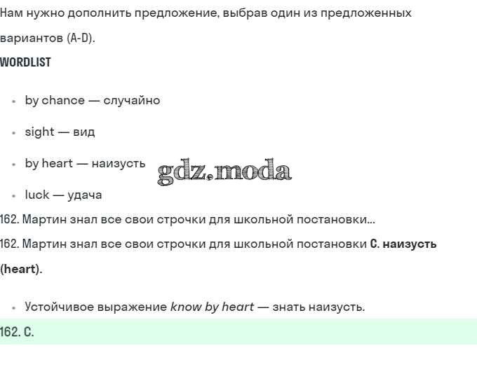 ГДЗ решение к заданию № 162 Английский язык 10 класс рабочая тетрадь Starlight Баранова К.М. Просвещение 2021 Углубленный уровень ФГОС бесплатно на гдз.мода!