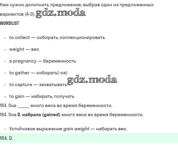 ГДЗ решение к заданию № 164 Английский язык 10 класс рабочая тетрадь Starlight Баранова К.М. Просвещение 2021 Углубленный уровень ФГОС бесплатно на гдз.мода!