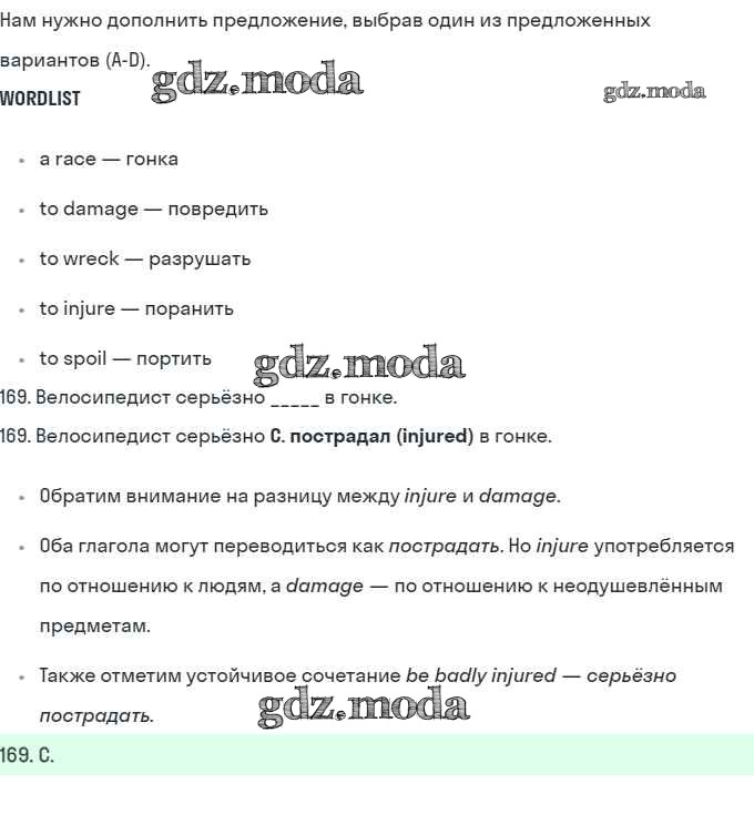 ГДЗ решение к заданию № 169 Английский язык 10 класс рабочая тетрадь Starlight Баранова К.М. Просвещение 2021 Углубленный уровень ФГОС бесплатно на гдз.мода!