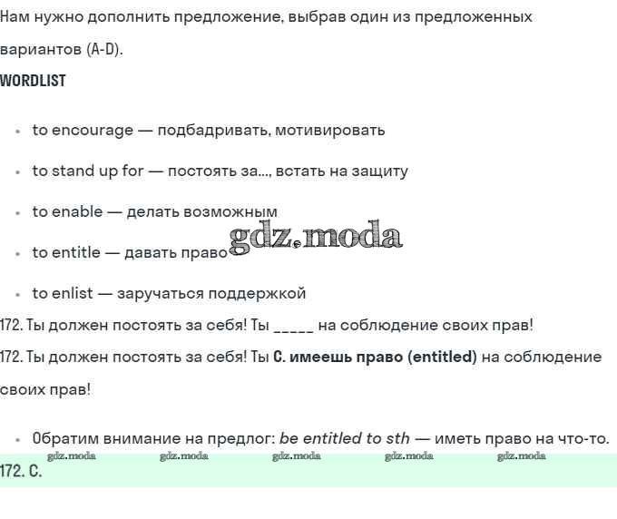 ГДЗ решение к заданию № 172 Английский язык 10 класс рабочая тетрадь Starlight Баранова К.М. Просвещение 2021 Углубленный уровень ФГОС бесплатно на гдз.мода!