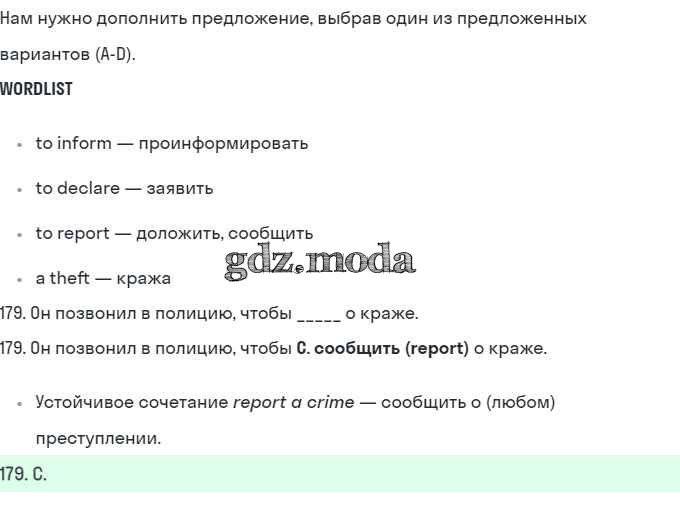 ГДЗ решение к заданию № 179 Английский язык 10 класс рабочая тетрадь Starlight Баранова К.М. Просвещение 2021 Углубленный уровень ФГОС бесплатно на гдз.мода!